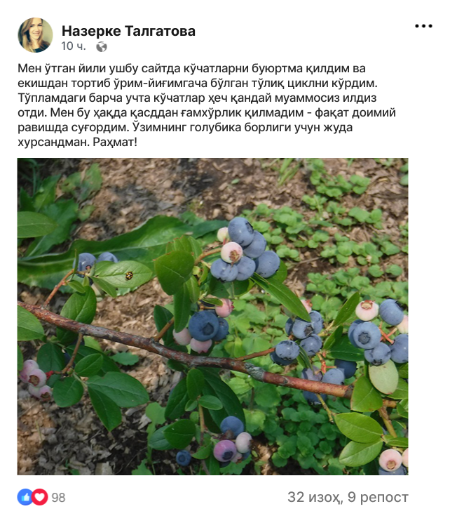 Голубика бум - сизнинг участкангизда сувли мевалар ўстиринг!