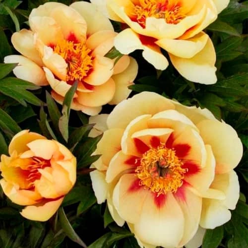 Border Charm - самые красивые ито-пионы на вашей клумбе. Селекционерам Японии удалось создать кремовые соцветия, которые внутри дополнены красными язычками и ярко-желтыми махровыми пыльниками. Листва долго сохраняет декоративный вид, а с приходом холодов приобретает багровый окрас. Подходит сорт для оформления бордюр, отлично сочетается с флоксами, хризантемами, астрами. Бордер Шарм хорошо высаживать вдоль прогулочных дорожек или вблизи скамеек. Цветы ценятся флористами, поскольку долго стоят в срезе и обладают приятным ароматом. Кусты не боятся знойного лета, проливных дождей, холодной зимы - это отличный вариант для садов Казахстана.