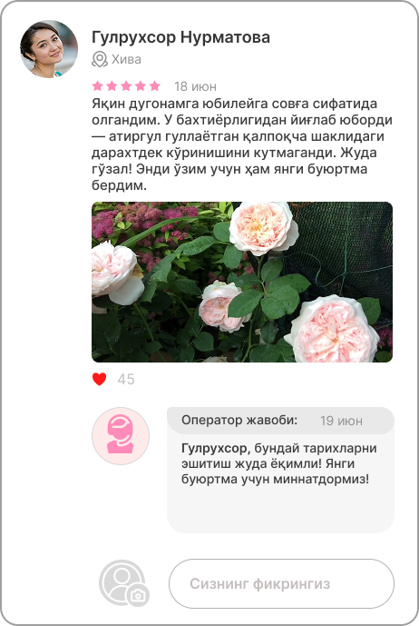 Мамнун харидорларимизнинг фикрлари